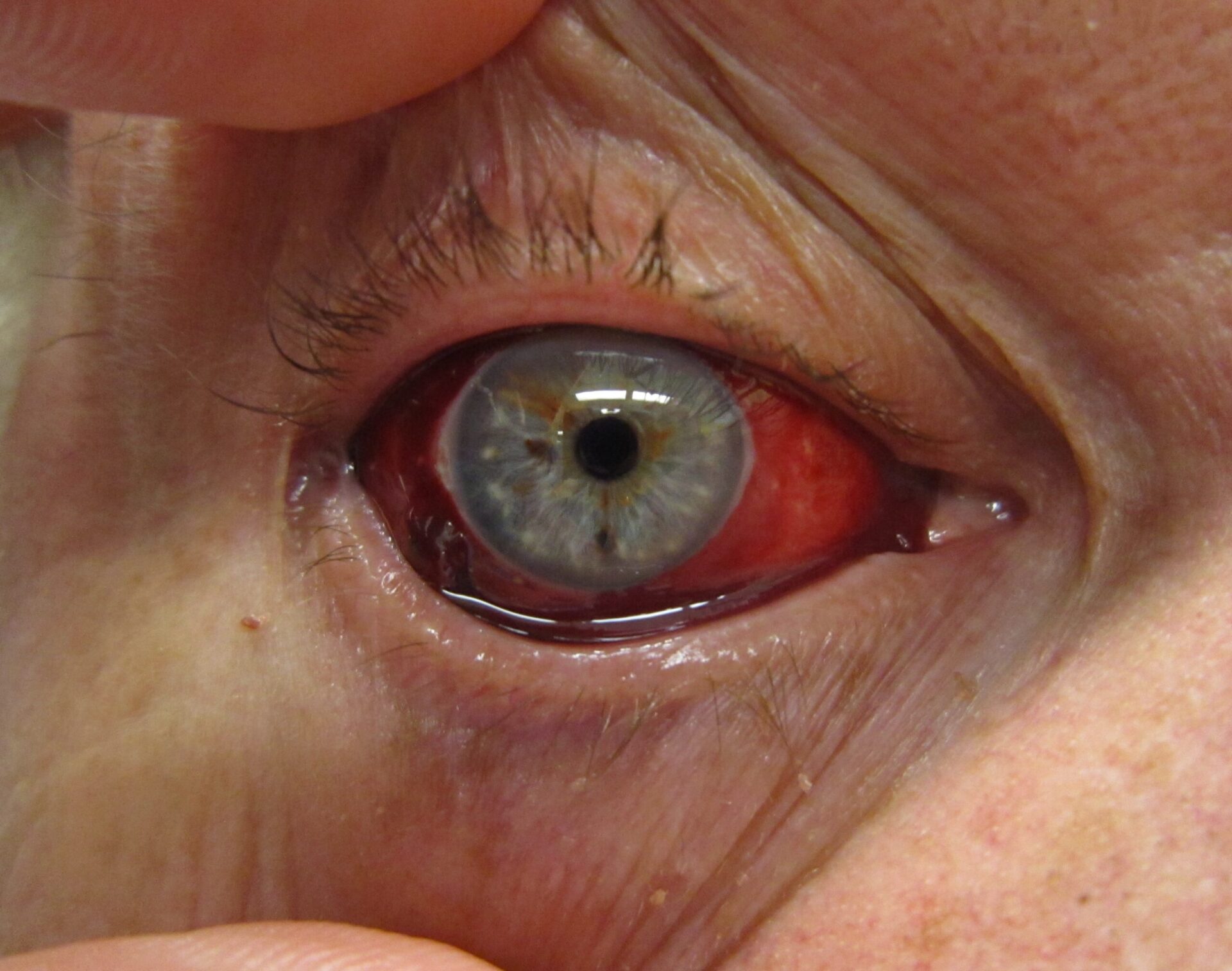 Porém, diferentemente da pele espessa presente sobre um hematoma que eventualmente se apresenta na superfície do nosso corpo, quando se trata da fina conjuntiva, um tecido praticamente transparente, é possível se observar diretamente o sangue, causando o espanto.